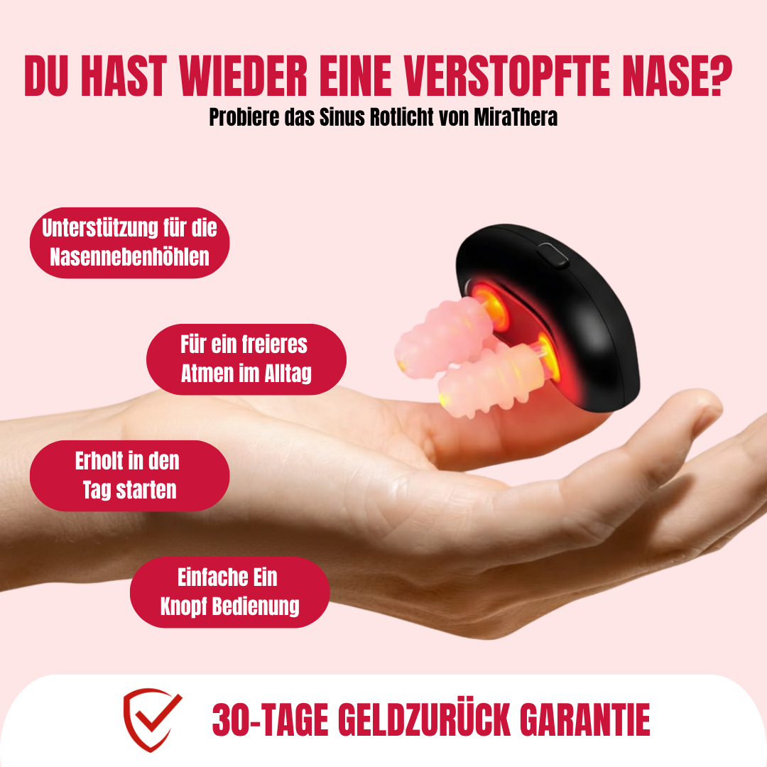 Das MiraThera Sinus Rotlicht ist ein innovatives Gerät, das rotes Licht nutzt, um die tägliche Nasenpflege zu unterstützen und bei wiederkehrenden Erkältungsbeschwerden für wohltuende Erleichterung zu sorgen.
